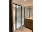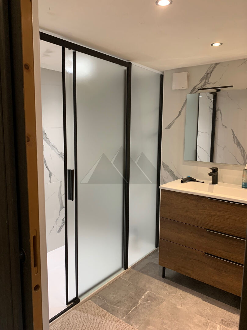 toujours au rez-de-chaussée, un grand bureau ou quatrième chambre, une salle d'eau neuve avec douche à l'italienne, un WC séparé, un deuxième petit bureau et un accès au garage.