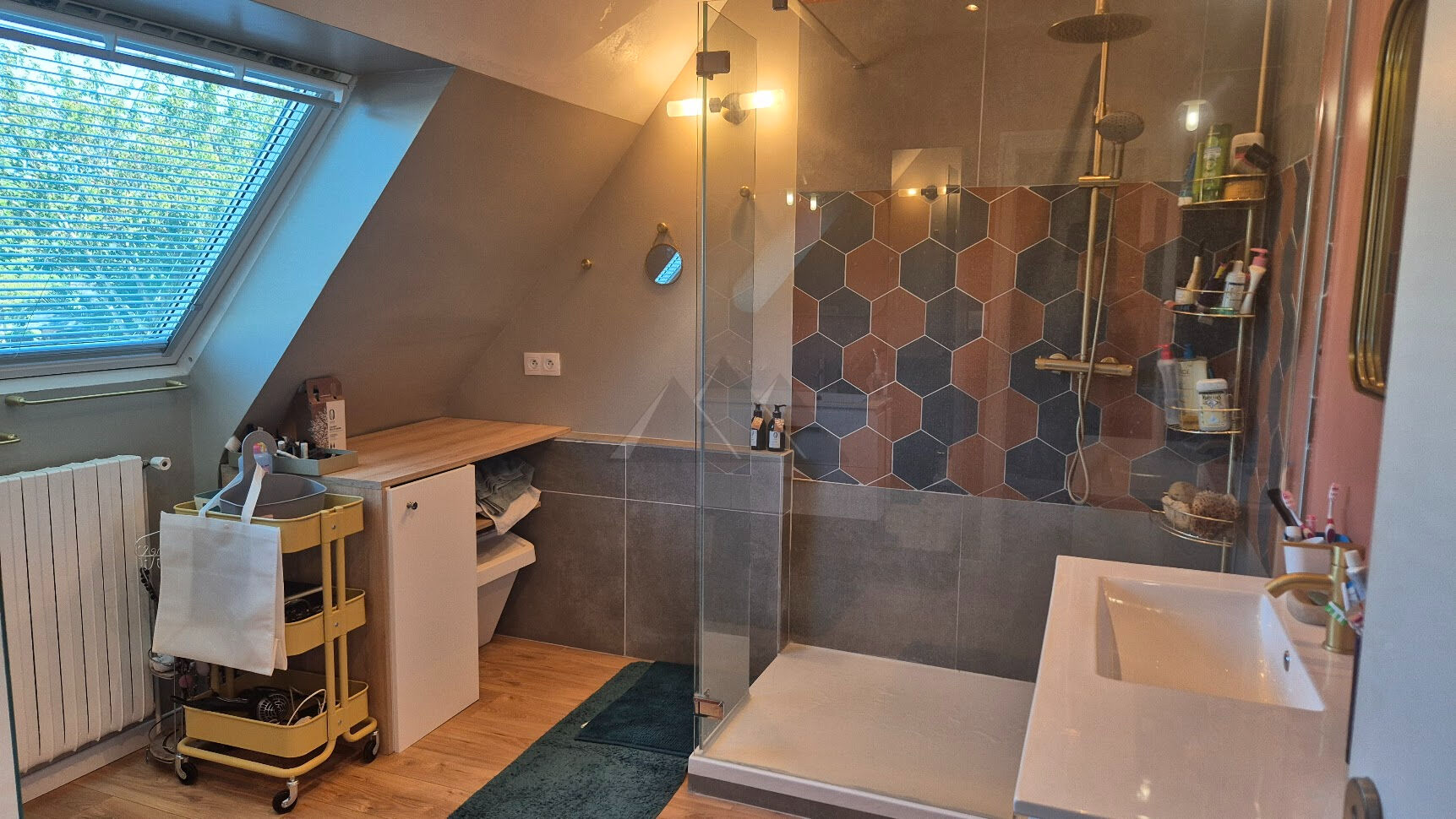 Baignée de lumière, la pièce de vie de 60 m² est prolongée par une terrasse sans vis-à-vis. L'espace salon dispose d'une cheminée fonctionnelle. Au calme et en même temps proche de tout, elle dispose de 4 chambres de belle taille dont une suite parentale permettant une vie de plain pied.