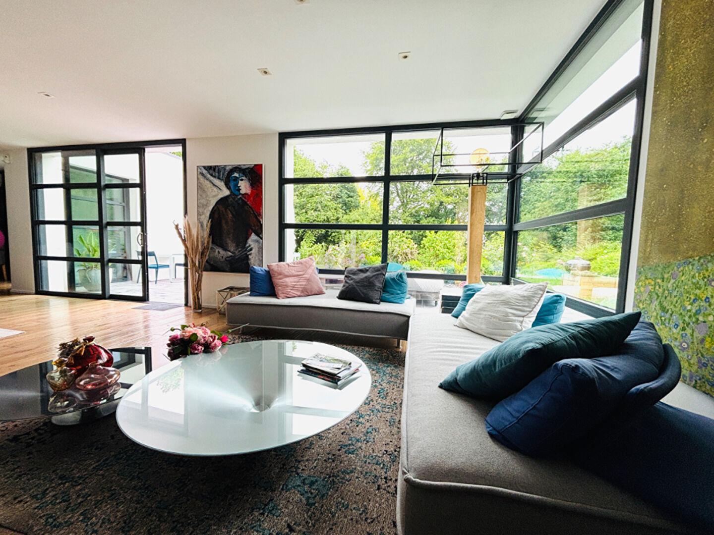 RIVE GAUCHE, aux portes de Brest, à Gouesnou, dans le quartier recherché de la Vallée Verte alliant calme et cadre verdoyant, découvrez cette superbe maison d'environ 145 m² habitables signée par un architecte de renom.