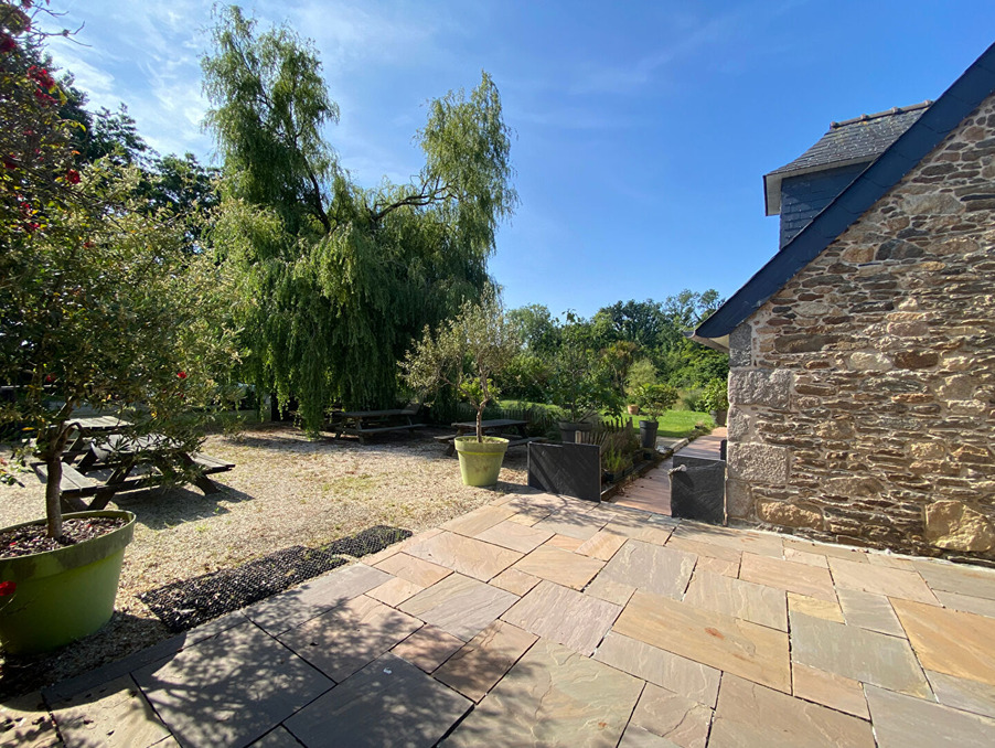 Magnifique ensemble de deux longères en pierres apparentes, niché dans un cadre résidentiel et verdoyant, à seulement 3 minutes du centre ville de Lesneven, dans la commune de Kernouës.