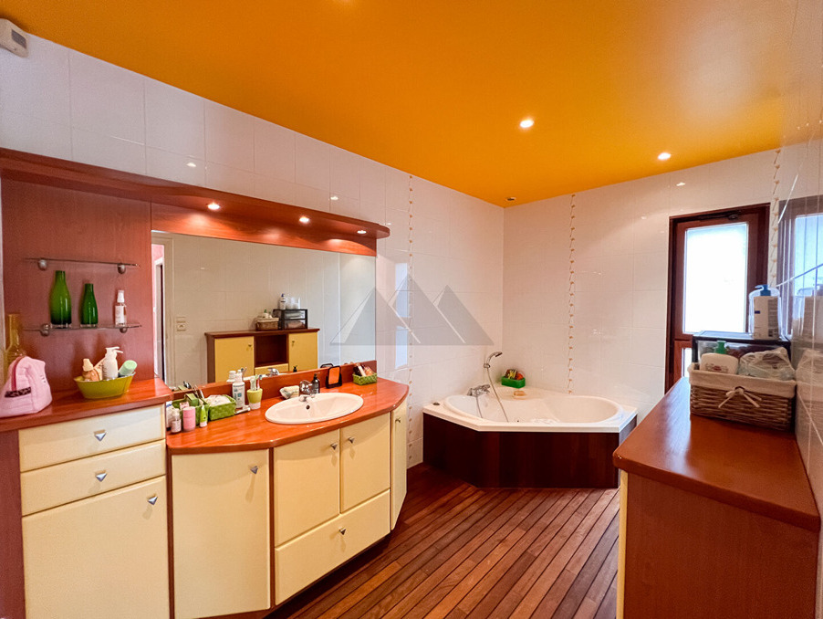 Cette grande maison offre au rez-de-chaussée une vaste entrée donnant sur une salle de réception et un salon avec cheminée double. Une belle suite parentale composée d'une salle de bain avec baignoire balnéo double et une grande douche, dressing et Wc séparés. Une cuisine équipée fermée, un cellier et une seconde chambre viennent compléter la partie habitable du rez-de-chaussée. Toutes ces pièces sont dotées de baies vitrées donnant sur terrasse. L'espace piscine saura vous ravir avec son bassin de 9 mètres de long et son poolhouse parfait pour de belles soirées. A l'étage vous trouverez 2 chambres avec une salle d'eau et une suite.