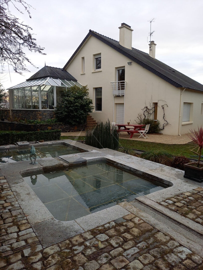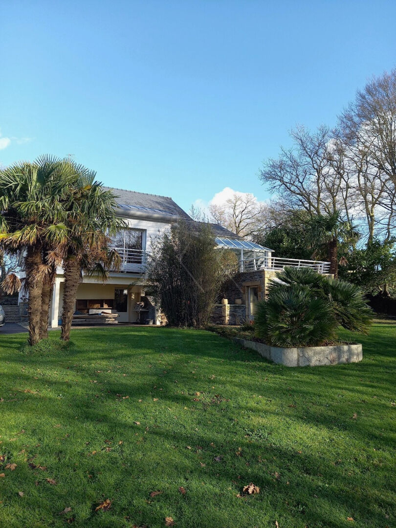 A la sortie immédiate de Landerneau, le centre-ville est à seulement 5 minutes, cette maison réserve d'agréables surprises. Par ses volumes, l'organisation de ses espaces de vie et de détente, elle multiplie les ambiances et les lieux de convivialité. Le séjour, plein ouest profite pleinement par une large baie, de la vue qui porte jusqu'au pont de Plougastel. L'espace repas y est délimité par un parquet de bambou entouré de tomette rouge-brique. La cuisine, juste à côté, marie aux meubles de bois clair un granit noir marbré. Le salon, plus cosy, fait face à une cheminée encadrée de briques. Cette vaste pièce se prolonge sur une véranda, véritable salon d'été qui s'ouvre sur une terrasse à l'ouest. A ce niveau se trouve également une grande chambre avec son petit balcon donnant au sud. Au niveau supérieur, deux autres chambres se partagent l'étage avec des toilettes et une salle de bains. En rez-de-jardin, la maison dispose de deux autres chambres, dont une très grande. Les deux chambres communique via une salle de bains partagée via deux portes à calendage. A ce niveau, dans le hall d'entrée se trouvent aussi une penderie et des toilettes. La maison s'élève sur un sous-sol avec lingerie, cave de rangement et un grand atelier avec accès direct sur l'extérieur. Un espace technique abrite la pompe à chaleur. Sous la terrasse, habillée de pierres, un vaste espace vitré attend sa destination. Dans le jardin un magnifique lavoir à l'ancienne, composé de pierres de taille, a été aménagé, il est alimenté par un captage. Cheminements pavés, terrasses abritée ou dominante agrémentent ce beau jardin qui s'incline en douceur vers la vallée.