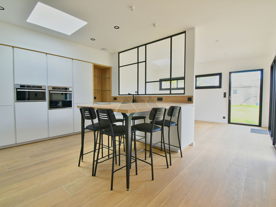 Au rez-de-chaussée, vous découvrirez une vaste pièce de vie baignée de lumière grâce à ses grandes ouvertures donnant sur le jardin. Le salon et la salle à manger sont séparés par une superbe cuisine équipée et dinatoire, véritable coeur de la maison. Trois chambres, une salle de bain avec douche, un WC séparé ainsi qu'une buanderie complètent ce niveau.
