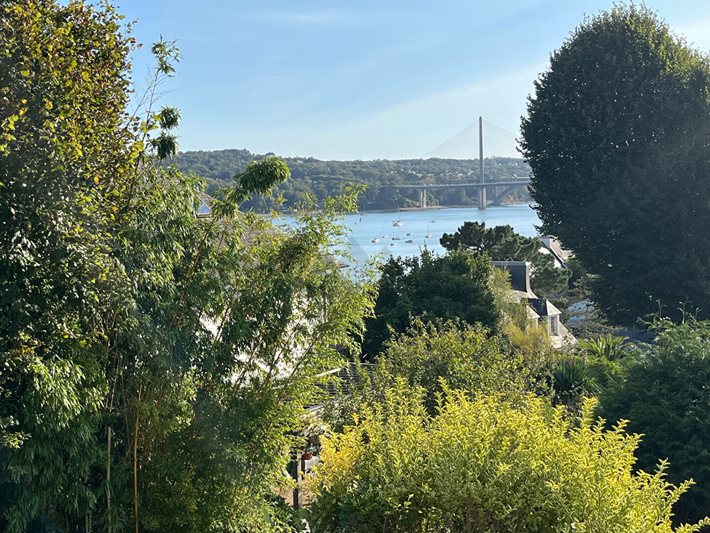 Anse de Camfrout. Idéalement située au calme d'une impasse dans un quartier très prisé du Relecq-Kerhuon, une belle contemporaine. Elle se compose au rez-de-chaussée de quatre chambres avec accès direct au jardin, une salle de bains et une salle d'eau. Afin de profiter au maximum du panorama, les pièces de vie se trouvent à l'étage. On y trouve un grand séjour et une cuisine ouverts sur 30 m² de terrasse avec vue imprenable sur la rade et le pont de l'Iroise. Un garage double et un parking privatif complètent cette description. Exposition Sud Ouest. Le jardin est clos de murs de pierre et de haies arborées. Belle opportunité à saisir pour ce bien unique sur le marché.