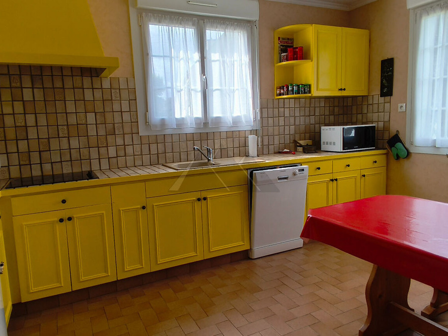 Au rez-de-chaussée : une véranda faisant office de salon d'agrément, un hall d'entrée, une cuisine indépendante aménagée et équipée, un salon-salle à manger avec sa cheminée insert.