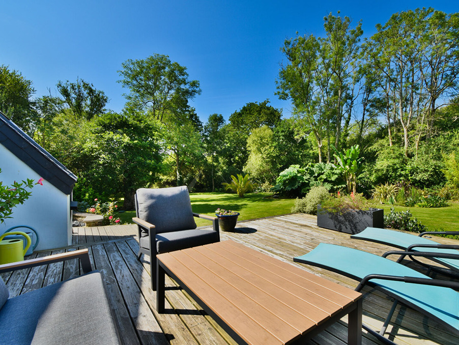 Située dans un secteur calme et verdoyant de la commune prisée de Plougastel-Daoulas, cette maison d'architecte construite en 1980 développe environ 230 m² habitables sur un magnifique terrain arboré de 1 800 m². Conçue pour laisser entrer la lumière et mettre en valeur son environnement, cette propriété offre un cadre de vie exceptionnel à seulement quelques minutes de Brest.