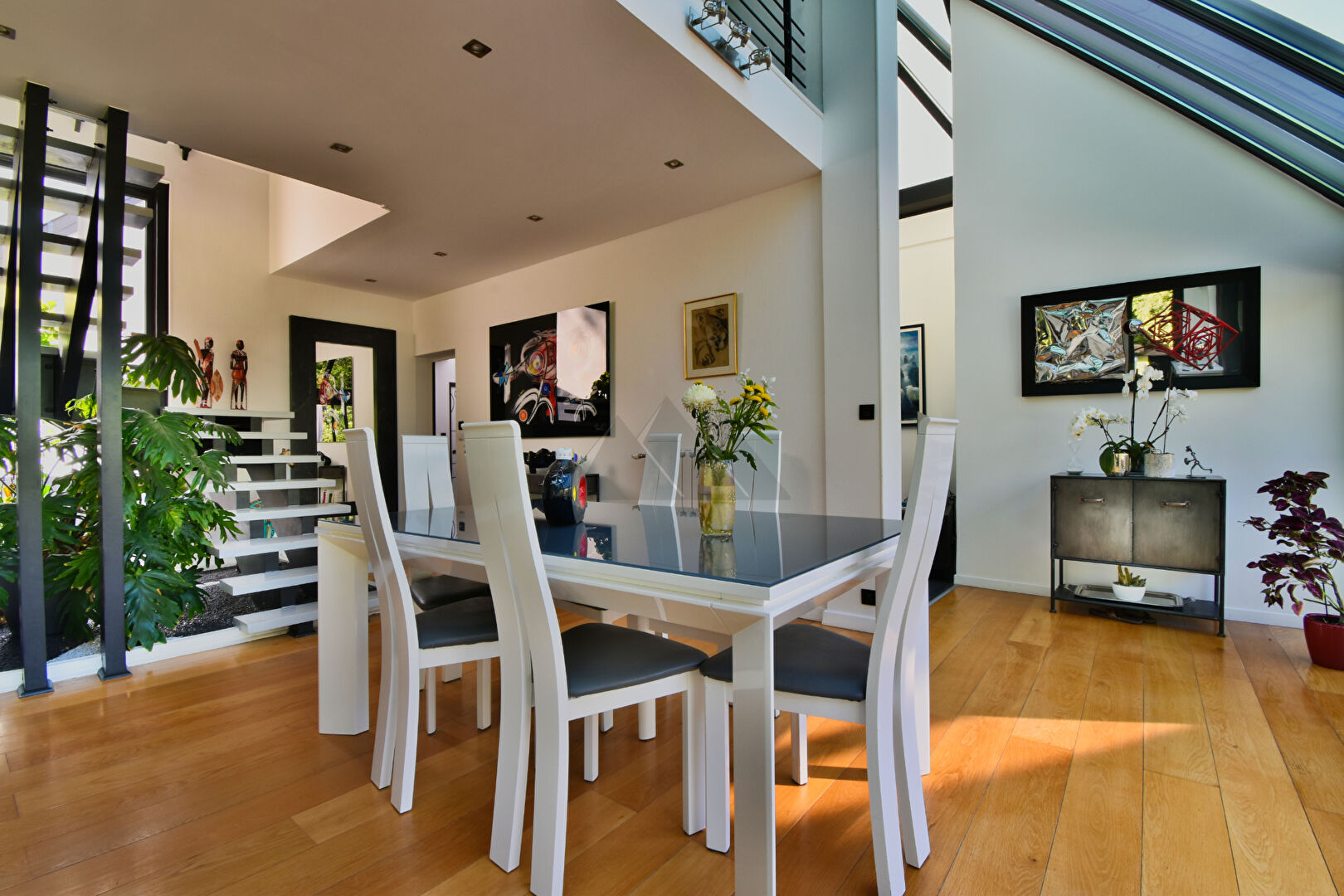 Le rez-de-chaussée se compose d'un vaste séjour double, lumineux et chaleureux, articulé autour d'un espace salon plus intime et d'une salle à manger tournée vers le jardin. La cuisine ouverte, dinatoire et entièrement équipée, offre un espace de convivialité idéal pour les repas en famille. Une suite parentale avec dressing et salle de bain (baignoire et douche), un bureau, ainsi qu'un WC indépendant complètent ce niveau.