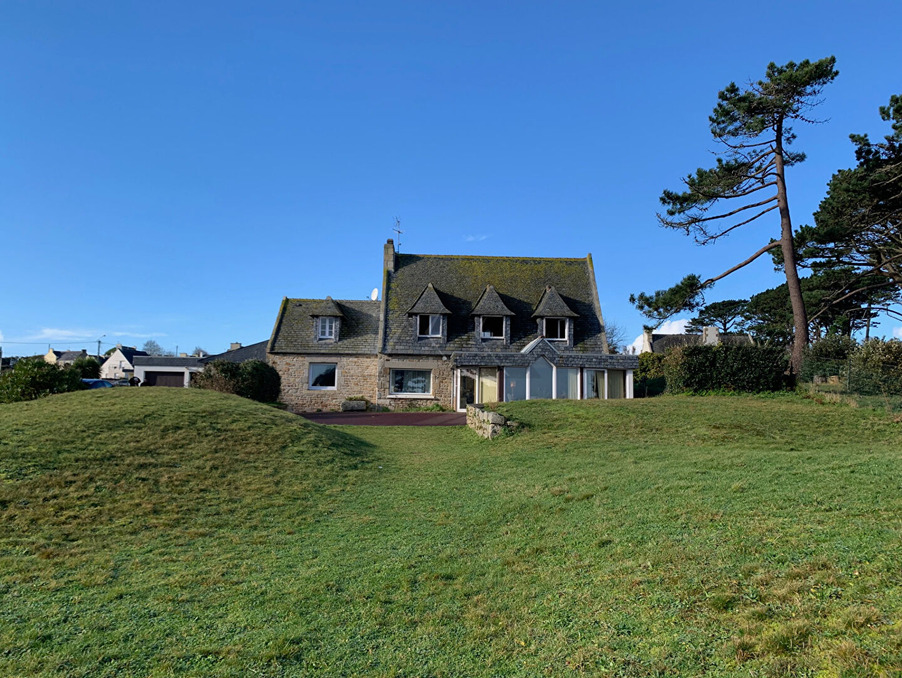 Plouguerneau : situation exceptionnelle pour cette propriété avec vue mer panoramique. Elle a également le privilège d'être au bout d'une impasse en bord de plage (accès direct).