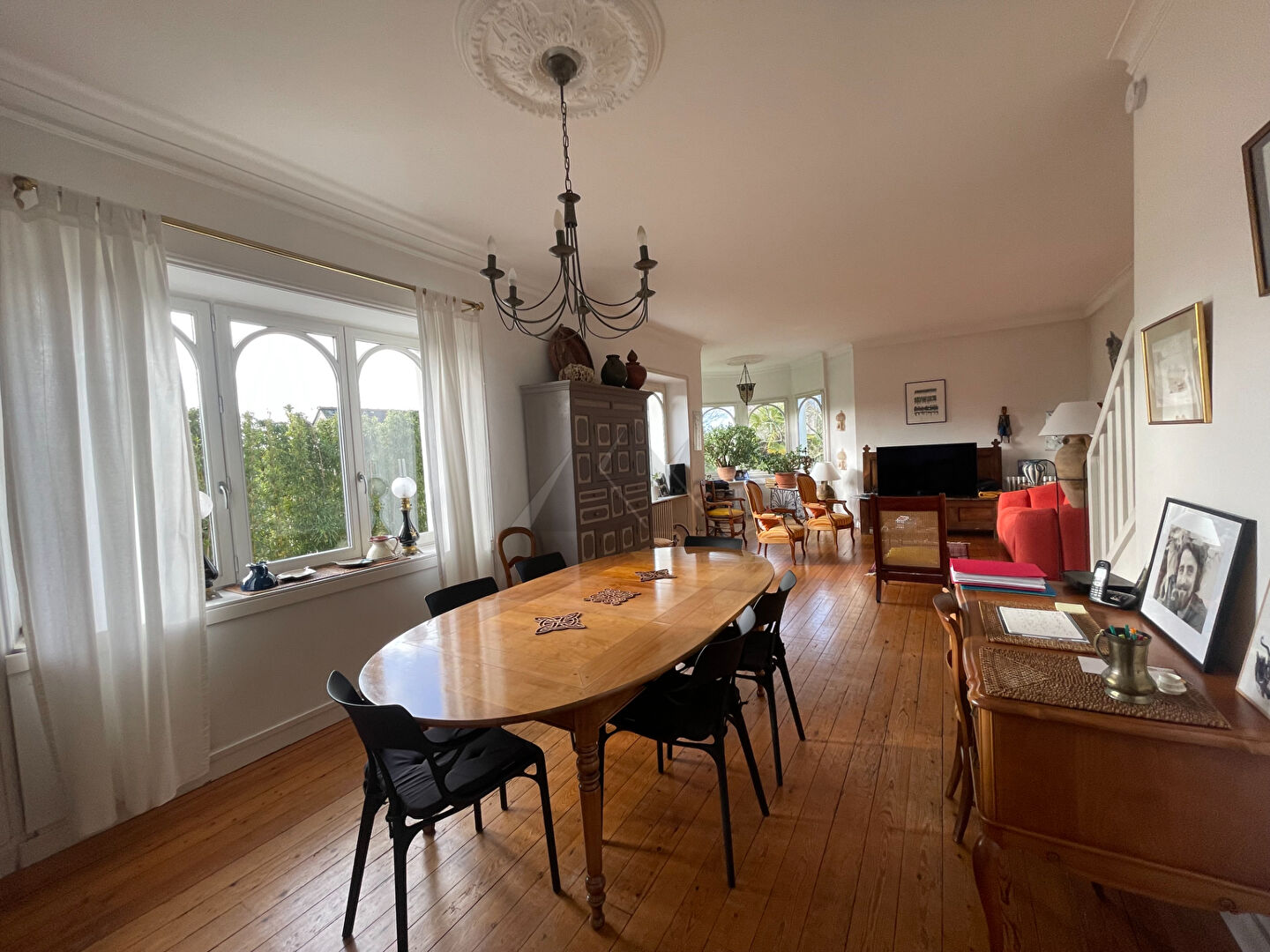 QUIMPER LOCMARIA . Beaucoup de caractère pour cette MAISON BOURGEOISE des années 1930, aux volumes généreux. Une véritable demeure familiale déployant ses 163 m² habitables avec sa pièce de réception lumineuse sur parquet , ses quatre chambres dont deux de belle taille, édifiée sur un jardin clos de murs et paysager de 380m².