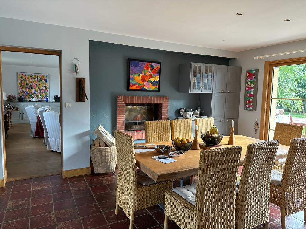 Dès l'entrée, un jardin d'hiver baignée de lumière mène vers une vaste cuisine équipée avec coin repas, ouverte sur un chaleureux espace de vie doté d'une cheminée double foyer. Le salon séjour orienté sud-ouest profite d'un ensoleillement optimal et s'ouvre sur une grande terrasse, équipée d'une banne couvrant toute sa surface, idéale pour profiter des soirées face à la nature.