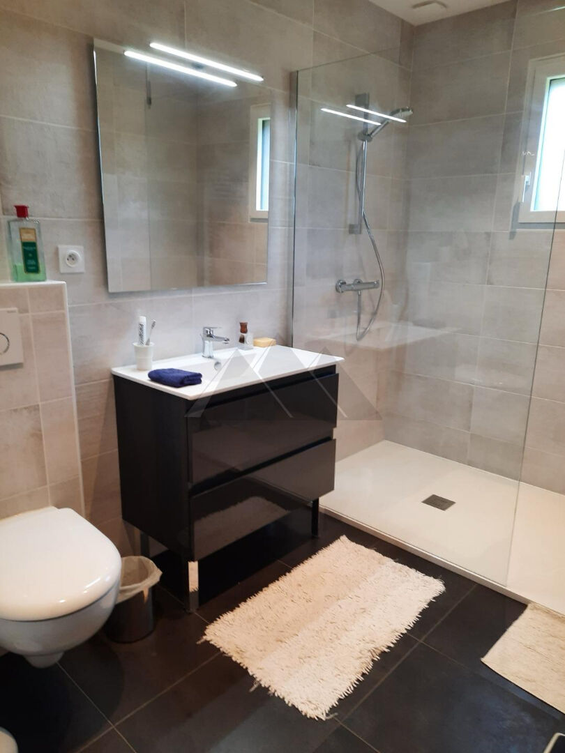 A l'étage, une chambre spacieuse avec dressing, salle d'eau et wc, ainsi qu'un espace bien-être avec spa, pour des moments de détente.